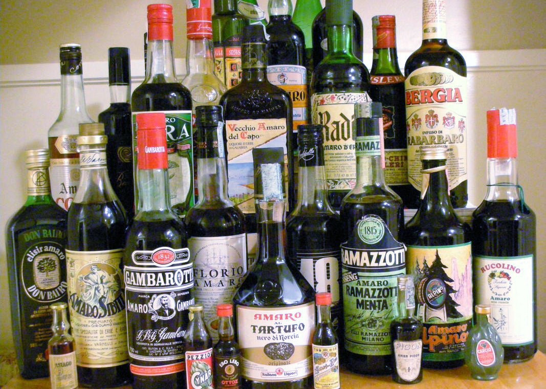 liquori secchi, dove gli amari la fanno da padrone: qui i liquori italiani sono campioni indiscussi con una selezione impressionante! L’amaro viene spesso bevuto a fine pasto come digestivo ma è ottimo anche in degustazione. Spesso sono a base di erbe aromatiche e radici, come ad esempio la genziana. In Italia, la produzione casalinga rimane molto popolare, e molti testi sono stati pubblicati sull’argomento.